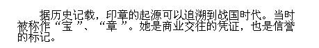 中国の印章文化の起源は、歴史資料によると、早くも戦国時代にさかのぼることが出来ます。当時は、「宝」、「章」と呼ばれていました。印章は商売取引上に信頼関係などのしるしとして多いに使われてきました。