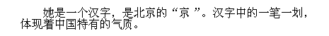それは一つの漢字です。つまり北京の"京”の字です。漢字の一画一画に中国らしさが秘められています。
