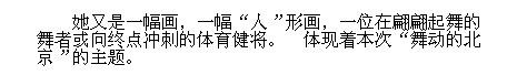 また、それは一つの絵でもあります。運動選手がゴールインする様子や舞い上がっている人の様子などを想像することができます。これは今回のテーマ「踊る北京」のイメージを強調しています。