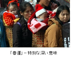 実はこれを日本語に訳せばお分かりになると思います。それは日本の正月前の「帰省ラッシュ」のことです。しかし13億人口、960万平方キロの大国―中国で(起きる)帰省ラッシュが皆さんの想像をはるかに超えるものでしょう。