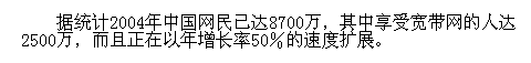 統計によると、2004年中国ネット利用者の数は8700万、うちブロードバンド利用者は2500万に達し、しかも年25%のスピードで増えつついています。