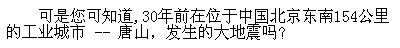 しかし30年前中国北京から154キロほど離れた工業都市唐山で巨大地震が起きたことをご存知ですか?