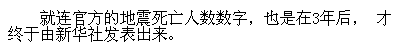 当時、いったいどのくらいの被害があったか(具体的数字)が知られることができなかった。政府の発表も三年後ようやく新華社により出されたのです。